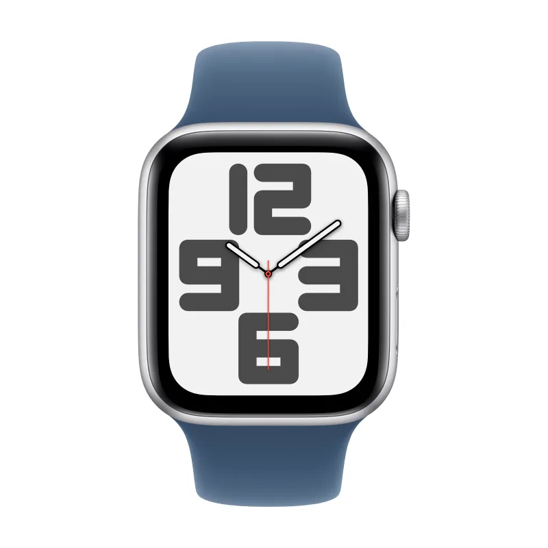 Apple Watch Series SE 2024 44mm Silver Aluminum Case with Denim Sport Band S/M