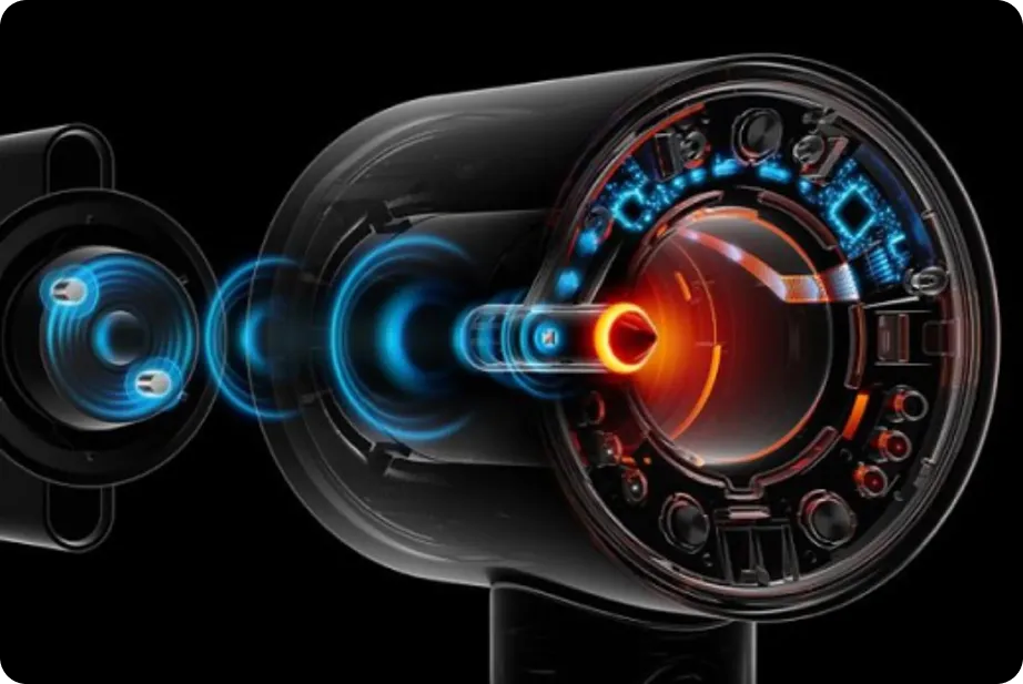 Dyson Supersonic оснащён цифровым мотором, который создаёт мощный направленный поток воздуха. Это позволяет значительно сократить время сушки без необходимости использовать экстремальные температуры.